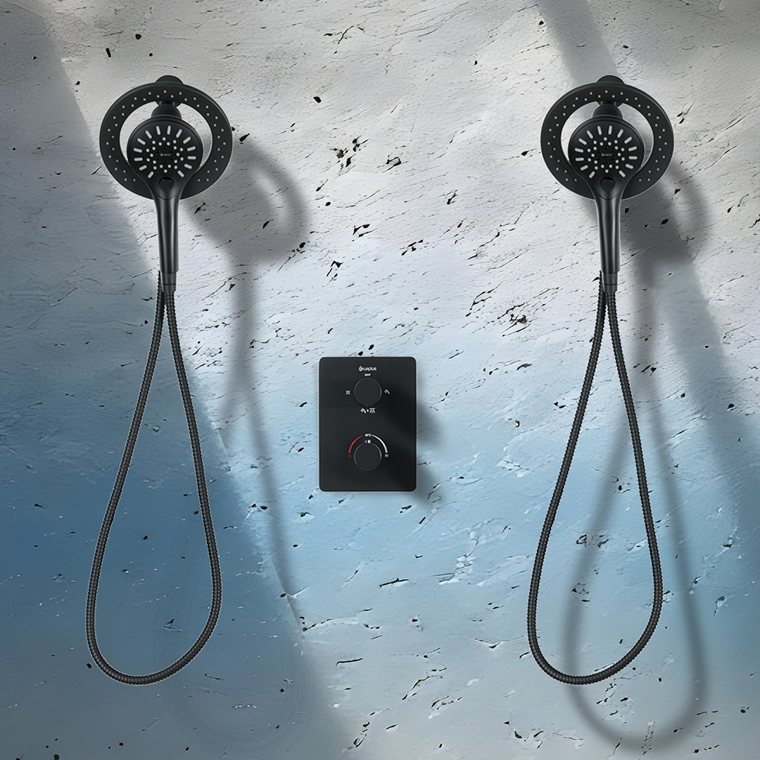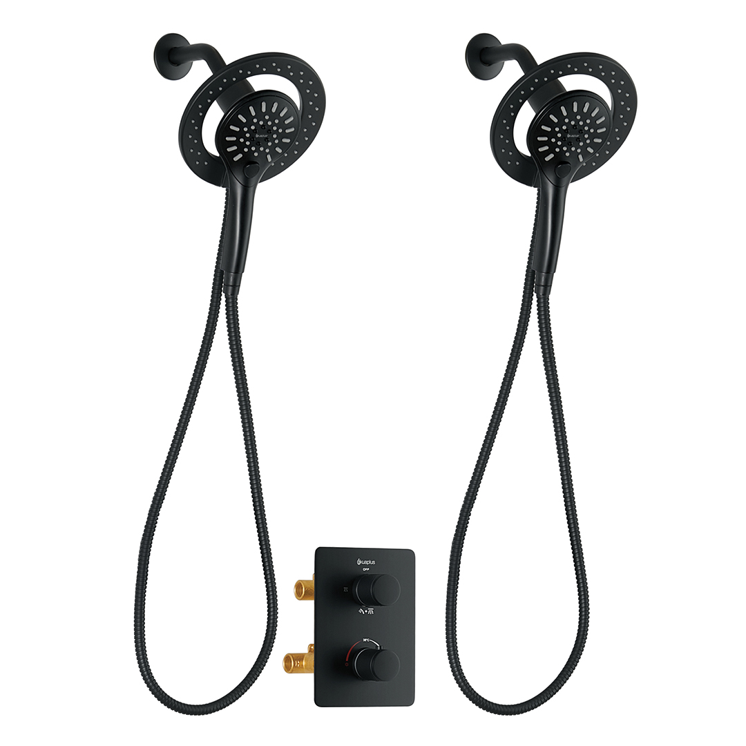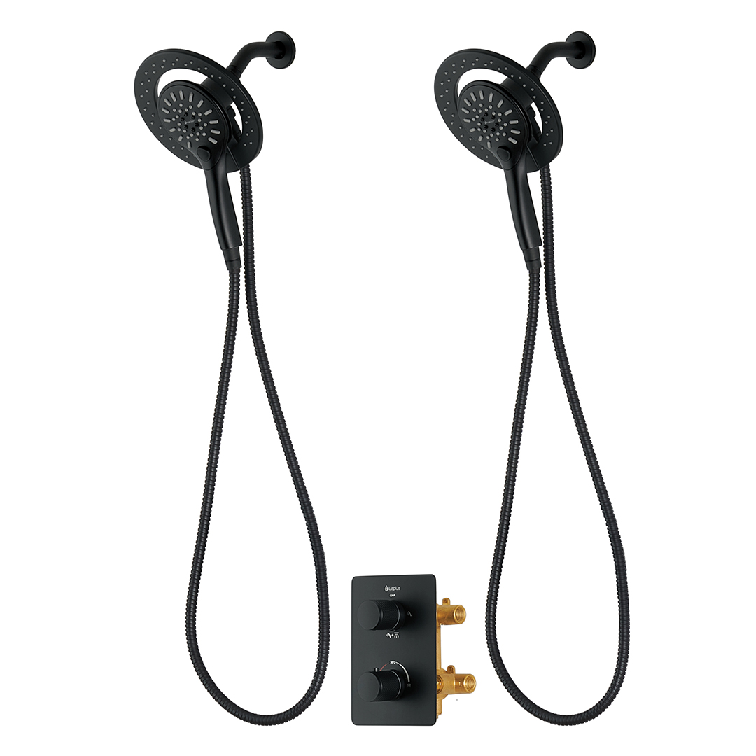 Elevate your shower experience with our premium magnetic thermostatic shower set in a sleek matte black finish. Featuring a durable brass valve with an integrated thermostatic cartridge, this system ensures precise temperature control for a luxurious shower. The 4-way diverter lets you switch between two shower systems, use them simultaneously, or turn them off entirely.