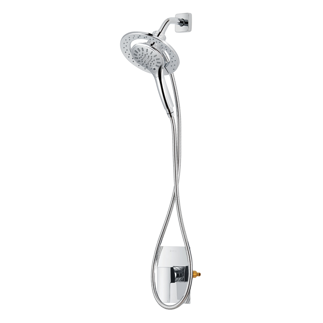 akuaplus® VERA Magnetic Shower Kit with pressure balance valve, 3-setting magnetic handheld Shower, and 7 3/8-inch pivoting Showerhead in a chrome finish.